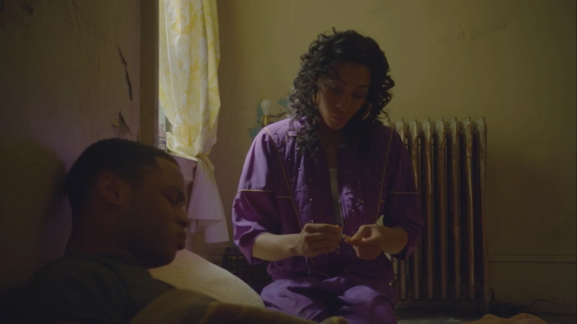 Resting on a mattress, Damon is checked by Blanca on his ill health.